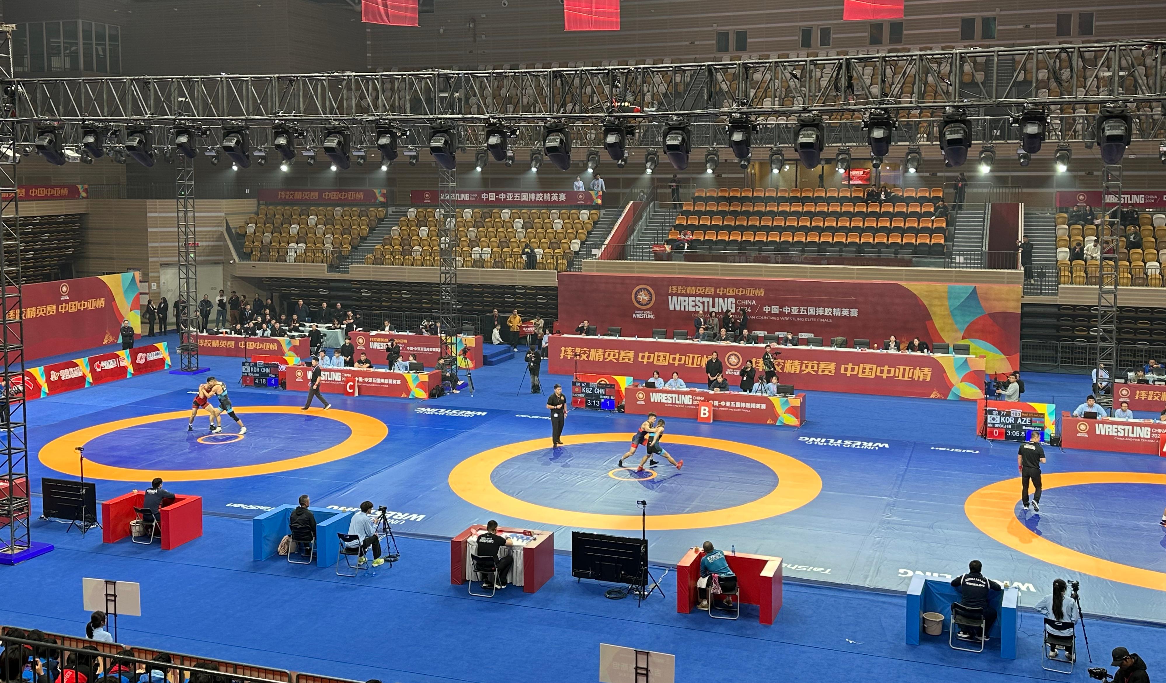 11月11日,2024“一带一路”中国-中亚五国摔跤精英赛在陕西省体育馆开赛。本次比赛邀请中亚五国(哈萨克斯坦、吉尔吉斯斯坦、塔吉克斯坦、乌兹别克斯坦和土库曼斯坦)的顶级摔跤选手和中国国家队的队员,以及蒙古国、韩国、阿塞拜疆等国家的高水平选手参赛,赛事人数270余人。