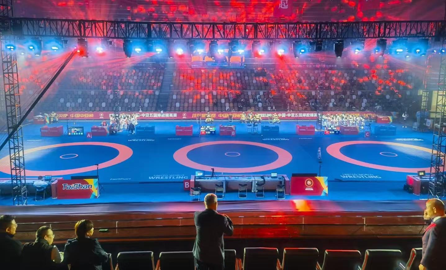 【概要描述】11月11日,2024“一带一路”中国-中亚五国摔跤精英赛在陕西省体育馆开赛。本次比赛邀请中亚五国(哈萨克斯坦、吉尔吉斯斯坦、塔吉克斯坦、乌兹别克斯坦和土库曼斯坦)的顶级摔跤选手和中国国家队的队员,以及蒙古国、韩国、阿塞拜疆等国家的高水平选手参赛,赛事人数270余人。 pg电子麻将胡了2作为本届赛事器材供应商与服务商,提供了由国际摔联认证的专项场地器材,这是pg电子麻将胡了2的又一荣耀时刻。 赛事在世界摔跤联合